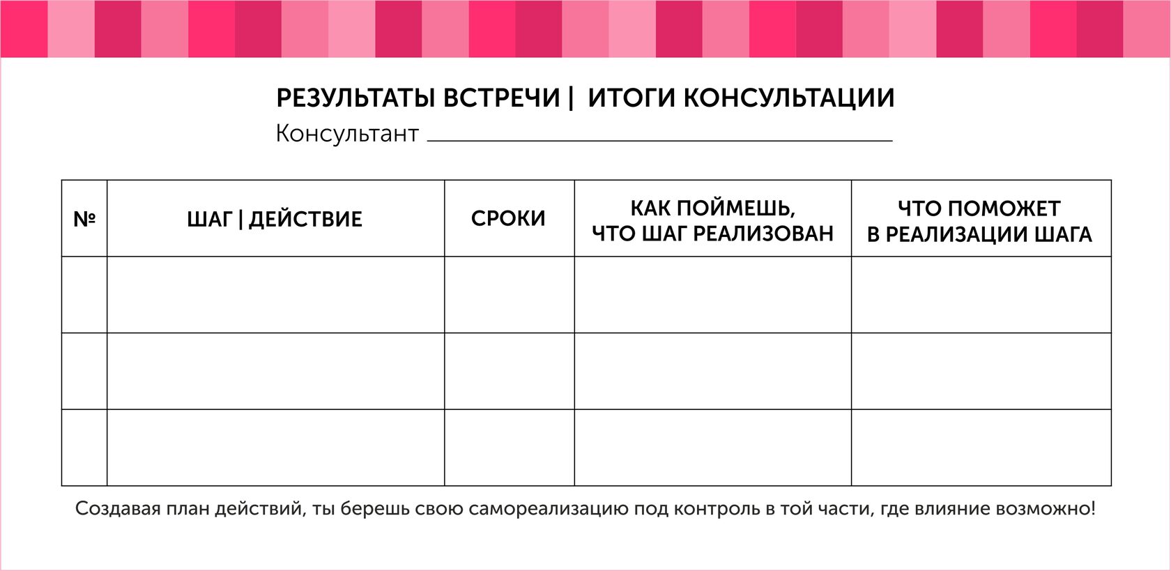 Этот бланк позволит вам зафиксировать результаты консультации для клиента.