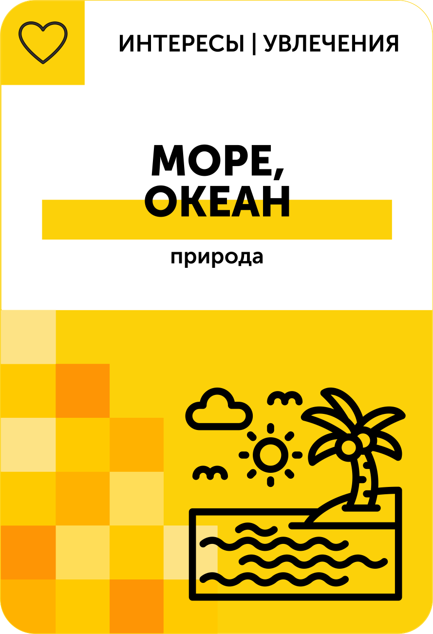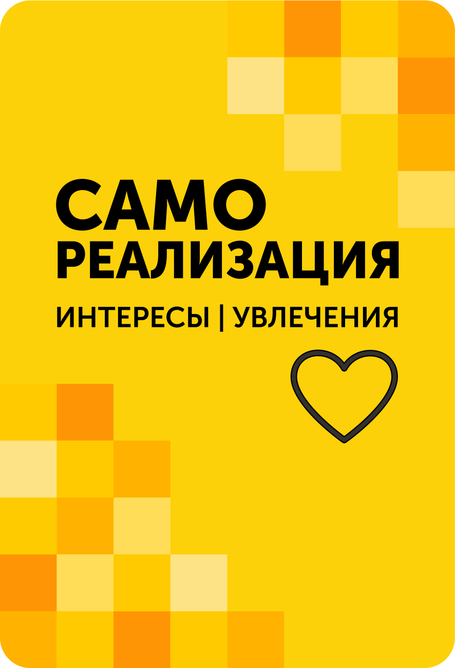 Интересы являются частью самореализации человека, поэтому мы выделили этот блок в отдельную колоду.